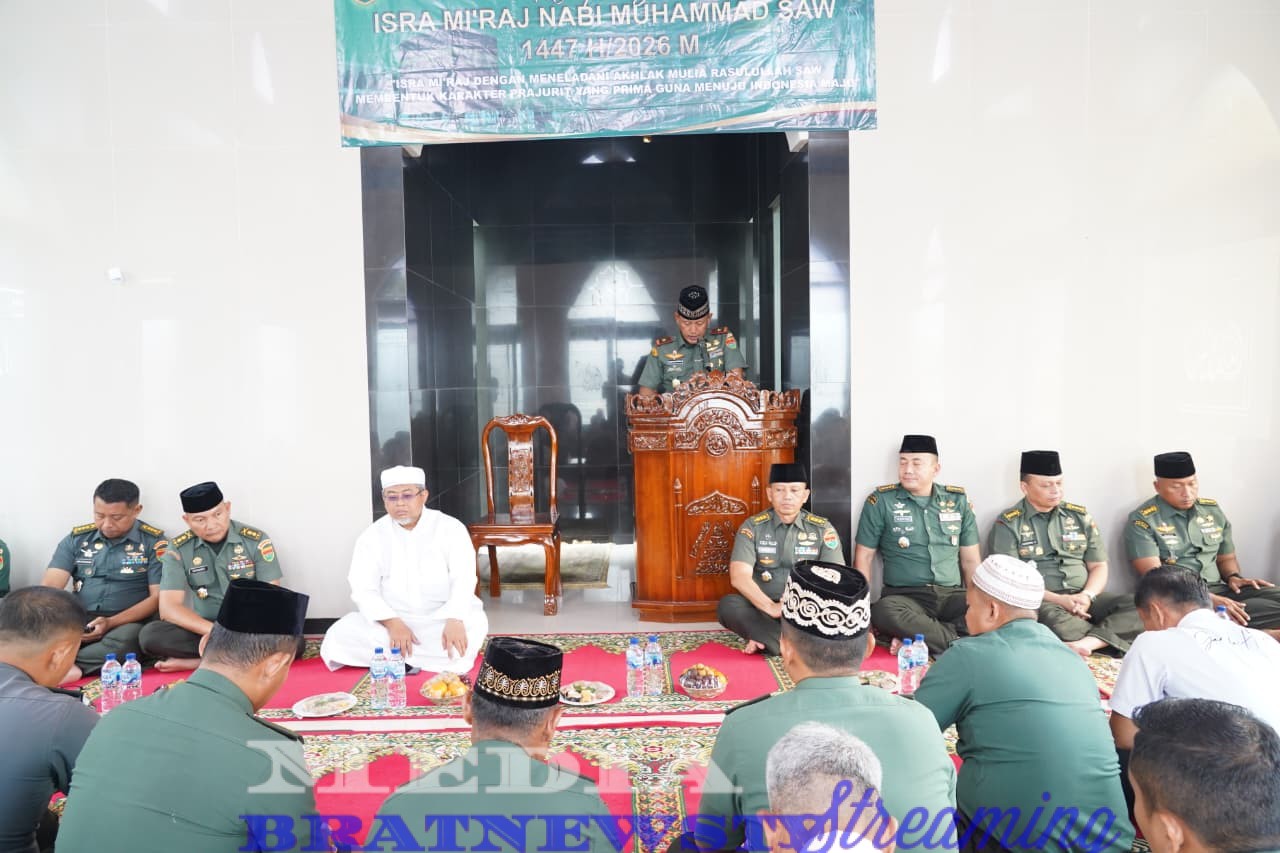 Dalam sambutannya, Danrem 043/Garuda Hitam menegaskan bahwa peringatan Isra Miโraj merupakan momentum spiritual yang sangat penting untuk memperkuat keimanan dan ketakwaan kepada Allah SWT.
