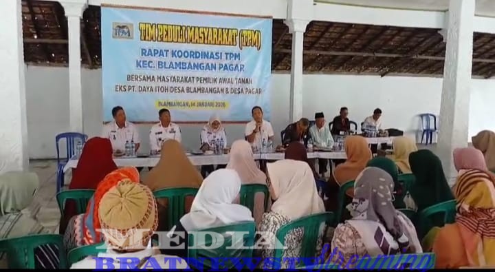 BrataNewsTV || —- Tim Peduli Masyarakat (TPM) Blambangan dan Pagar Kecamatan Blambangan Pagar Kabupaten Lampung Utara melaksanakan rapat dan koordinasi bersama masyarakat sebagai pemegang ahli waris selaku pemilik awal tanah eks PT Daya Itoh dan menyampaikan laporan kerja selama 5 tahun dalam kepengurusan tanah eks PT Daya Itoh, pada Rabu, 14/1/2026.