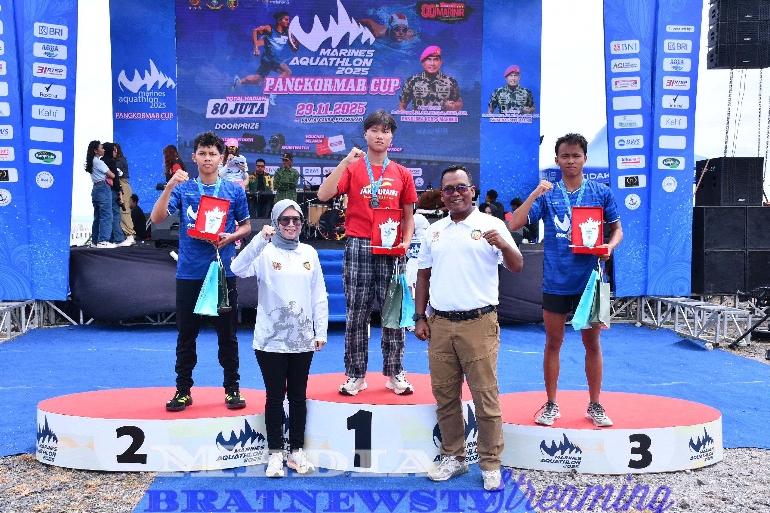 Panglima Korps Marinir (Pangkormar) Letnan jendral TNI (Mar) Dr. Endi Supardi, S.E., M.M., M.Tr.Opsla., CHRMP., CRMP., diwakili Inspektur Korps Marinir (IR Kormar) Brigjen TNI (Mar) Ahmad Fajar, S.M. didampingi Asisten Perencanaan dan Anggaran (Asrena) Brigjen TNI (Mar) Umar Farouq, S.A.P., CHRMP., M.Tr.Opsla., M.Han., secara resmi melepas start perlombaan Marines Aquathlon 2025 dengan menghadirkan atmosfer kompetisi yang penuh semangat dan sportivitas. ratusan atlet dari berbagai daerah serta perwakilan matra TNI-Polri beradu ketangguhan dalam dua bidang utama, yaitu renang dan lari. Sejak pagi, para peserta telah memadati arena pertandingan, bendera Flag Off menandai dimulainya lomba serta antusias masyarakat sekitar turut menambah meriahnya acara. Dengan tetap menjunjung tinggi sportifitas para atlet melesat secara cepat, berjuang menaklukkan jarak dan arus Pantai Cakra, sebelum bertransisi menuju trek lari yang sudah dipersiapkan dengan standar kompetisi Nasional. Prajurit Yonif 9 Marinir turut andil dan berhasil mengukir prestasi dengan meraih Juara 2 dalam ketegori Master atas nama Sertu Mar Sholihin yang menandakan ketekunanya dalam berlatih sehingga membanggakan satuan.