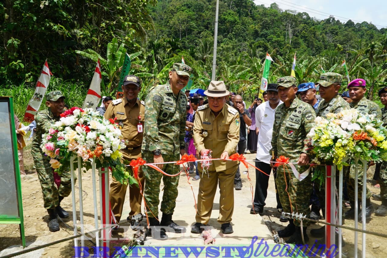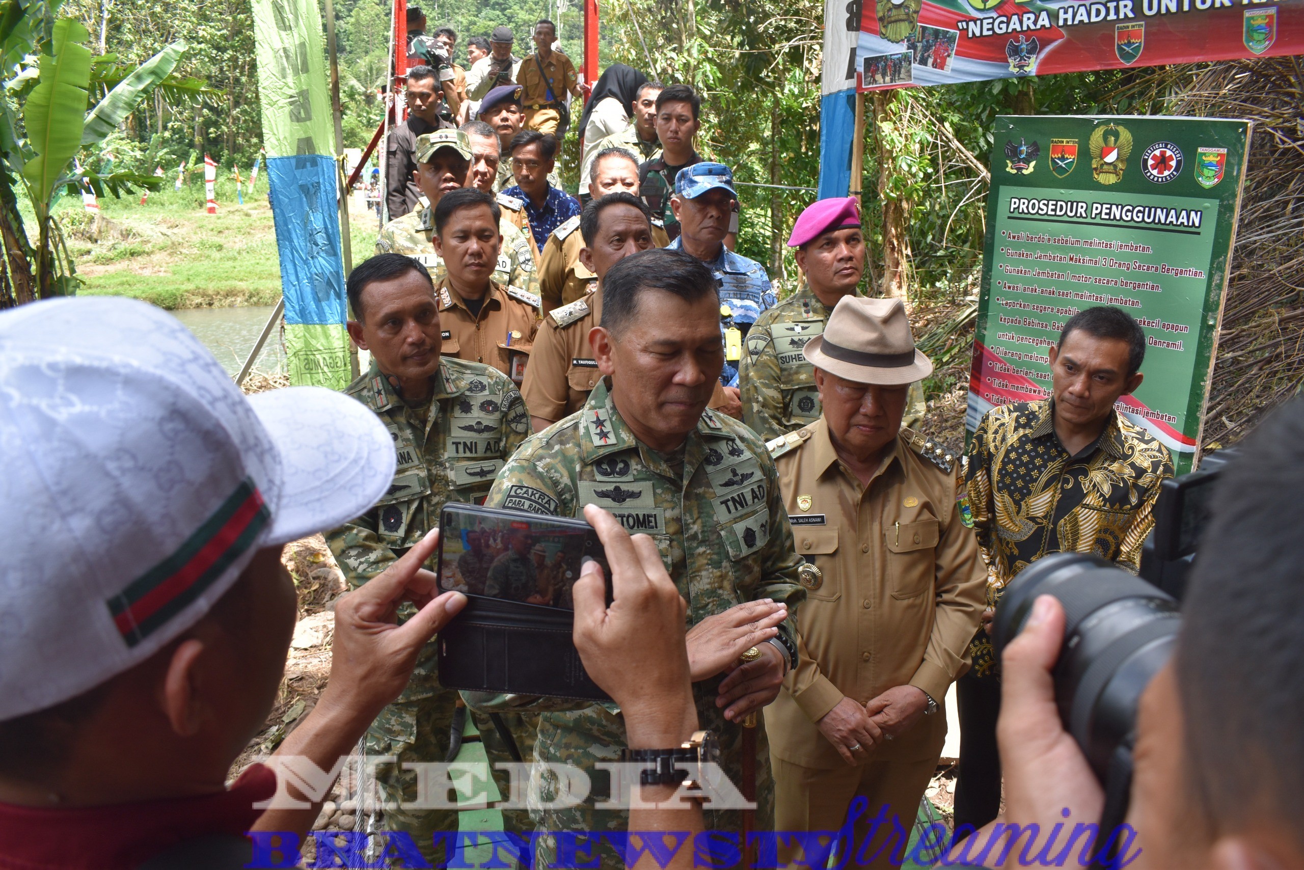 BrataNewsTV – Panglima Komando Daerah Militer (Pangdam) XXI/Radin Inten, Mayjen TNI Kristomei Sianturi, S.Sos., M.Si. (Han), meresmikan Jembatan Gantung Garuda yang membentang di atas Sungai Way Umbar, Pekon Umbar, Kecamatan Kelumbayan, Kabupaten Tanggamus, Selasa (30/12/2025).