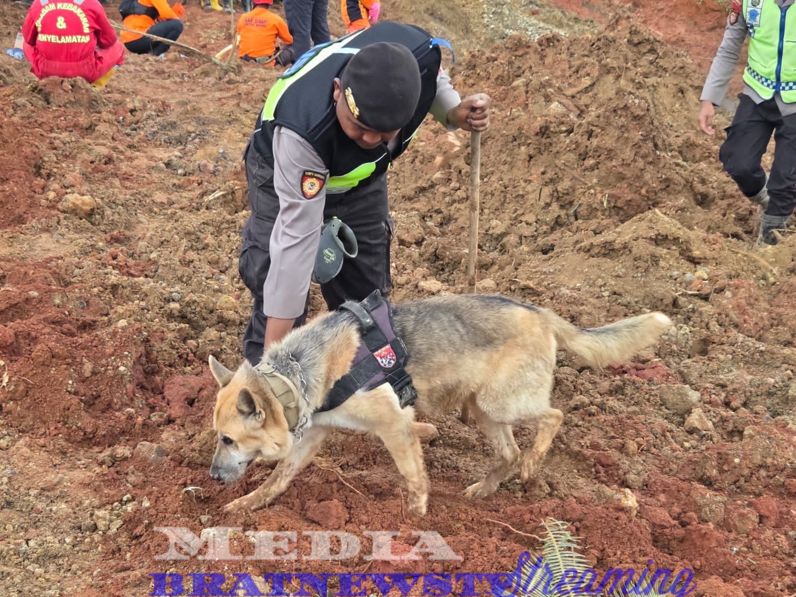 BrataNewsTV-Polri memperkuat upaya pencarian korban tanah longsor di Desa Cipendeuy, Kecamatan Majenang, Kabupaten Cilacap, Jawa Tengah, dengan menurunkan ratusan personel dan tim anjing pelacak. Total 205 personel diterjunkan pada hari kedua operasi SAR untuk menyisir lokasi terdampak.