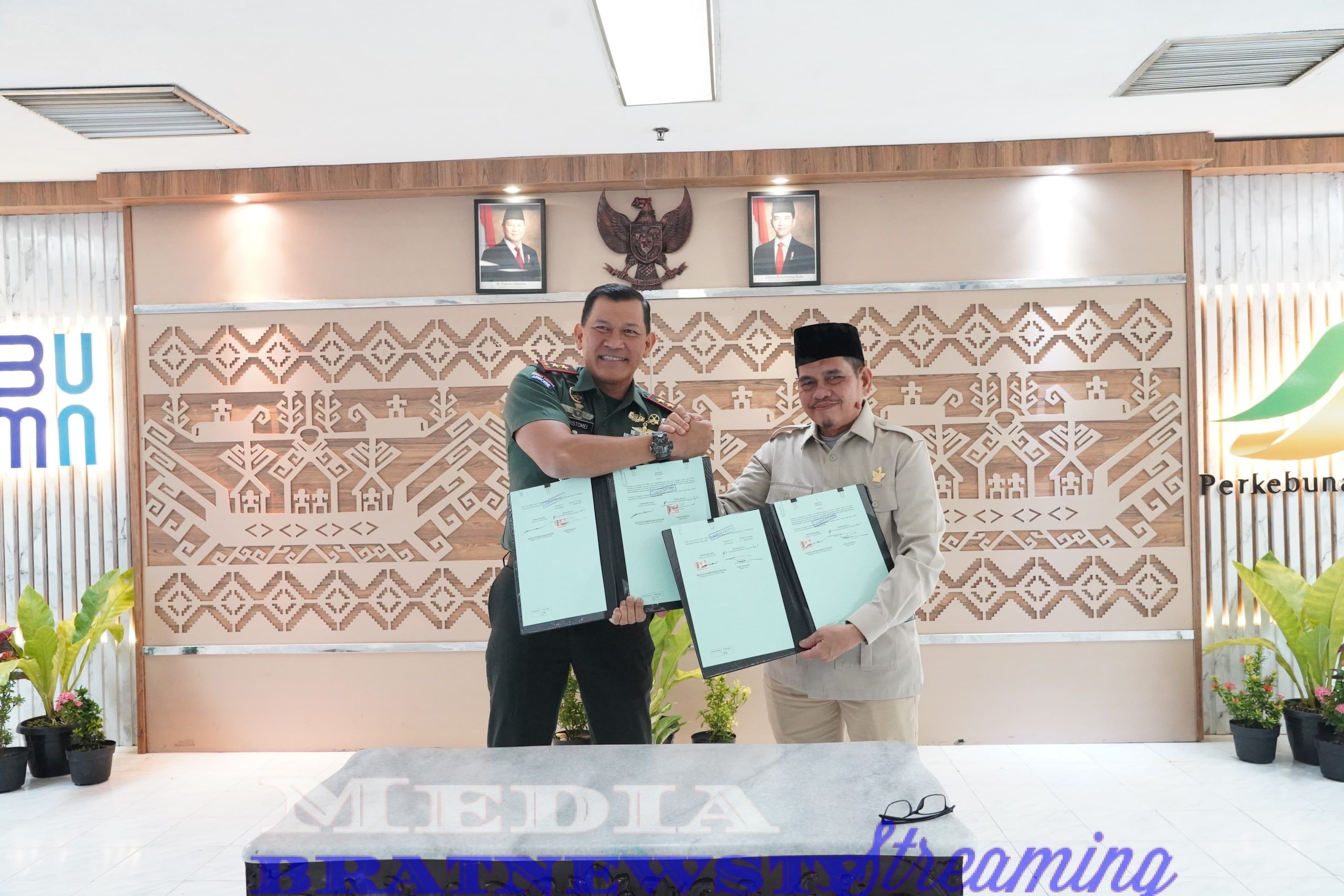 BrataNewsTV-Bertempat di kantor PTPN Regional 7 Bandar Lampung, Pangdam XXI/Radin Inten Mayjen TNI Kristomei Sianturi, S.Sos., M.Si., (Han) melaksanakan penandatanganan Nota Kesepahaman (MoU) antara PTPN I Regional 7 dengan Kodam XXI/Raden Inten. Kamis (8/1/ 2026).