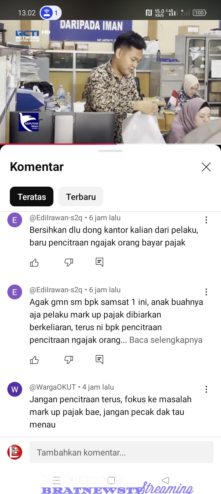Beragam komentar pun, bermunculan dari warga net, yang meminta Budi Kurniawan untuk menghentikan pencitraannya, dalam situasi guncangan yang sedang meradang instansinya. Mereka mengungkapkan ada rasa ketidakpuasan mereka, terhadap apa yang telah di lakukan oleh oknum – oknum di Samsat Oku Timur.